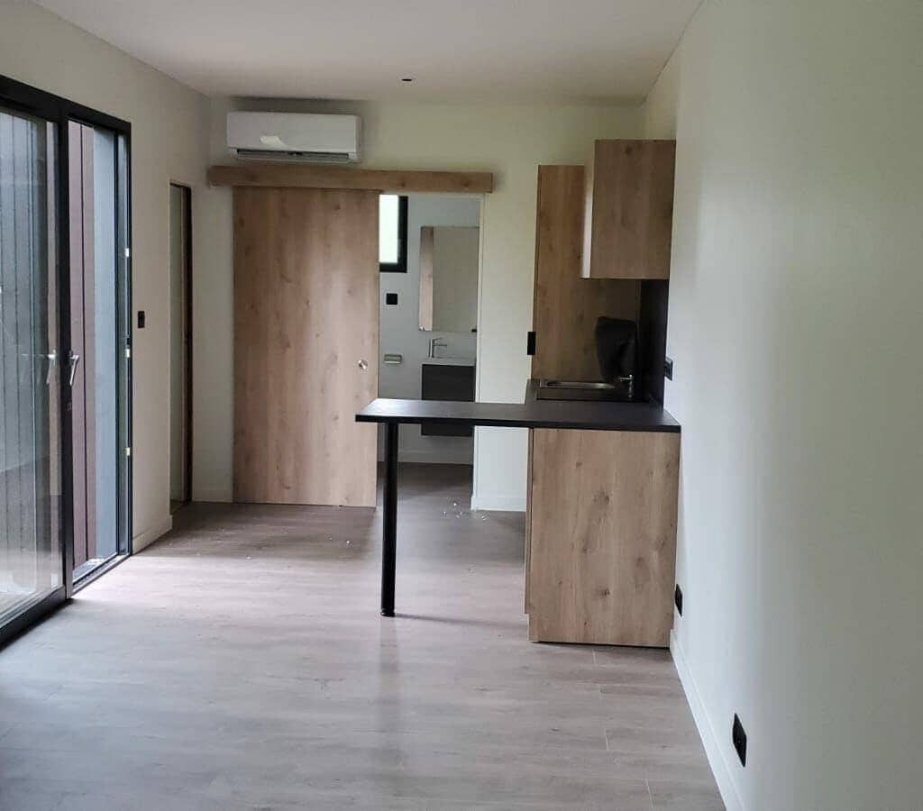 La Natibox Twin L avec ses 43 m² d’espace bien pensé, offre un environnement de vie lumineux, spacieux et fonctionnel. Son design élégant et ses finitions de qualité supérieure ajoutent une touche de modernité à l’extérieur de notre cliente, créant ainsi un espace à la fois esthétique et fonctionnel.