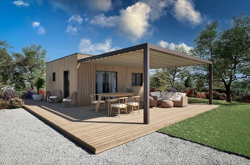 Prix à partir de, TTC, pour la configuration standard incluant le studio de jardin. Hors pose, transport, adaptions au sol et raccordements. Prix pouvant varier selon les régions.