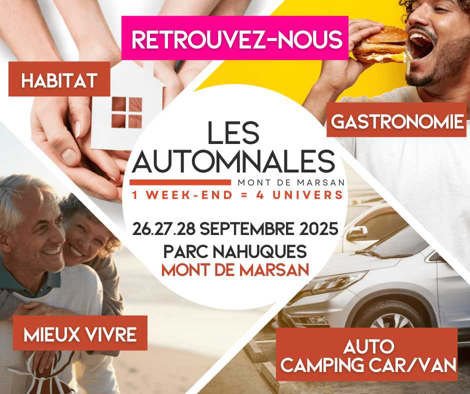 1 Week-end = 4 Salons !Habitat & Jardin – Maison & Auto – Mieux Vivre – Gastronomie➡️ Rendez-vous au Parc de Nahuques à Mont-de-Marsan pour