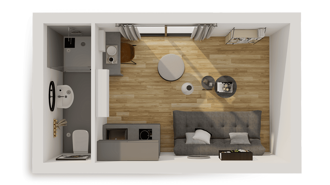 Pour recevoir sa famille ou ses amis, la Natibox Tiny en version Studio est idéale. Prêt à vivre et sans permis de construire, ce studio de jardin 15 m² est une véritable mini-maison en bois. Vous obtenez rapidement et facilement une pièce en plus dans votre maison.